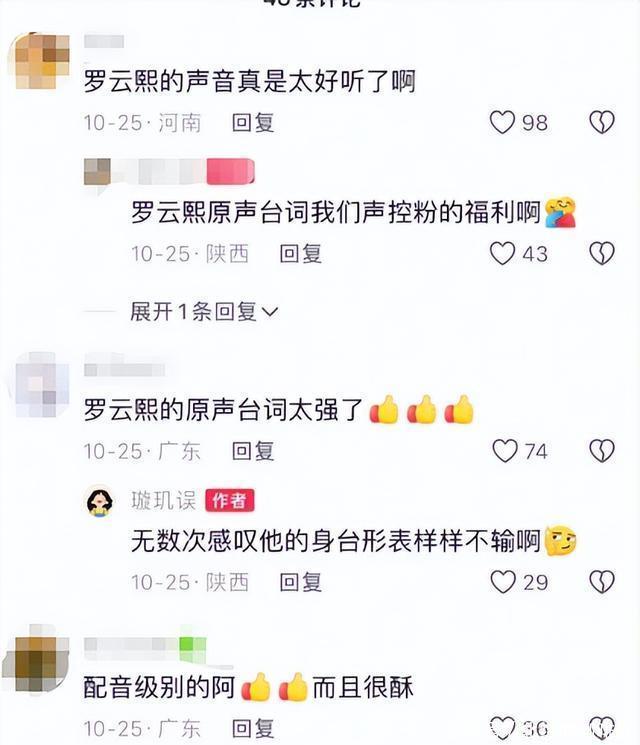 那时观众就对他的配音赞不绝口。 以扎实的原声台词加分,用过硬的演技赢得口碑,在团队协作中完成优质角色塑造,罗云熙的逆袭实至名归!