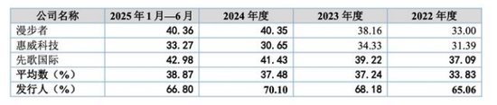 研发占比下降的反面是,销售费用率的增加,数据显示在2022年至2025年上半年,海菲曼的销售费用率分别为19.75%、18.85%、19.99%和20.43%,明显高于同期同行业可比公司平均水平的10.66%、12.31%、11.77%和12.17%。