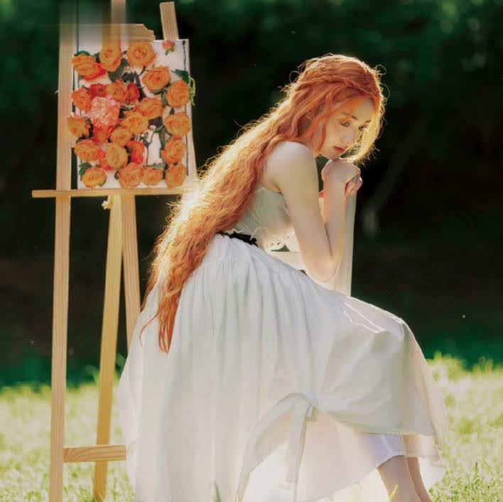 橙发不仅仅是爱豆的热门发色,也是欧洲精灵少女的固定印象。周洁琼之前就尝试过长卷发的披发造型,搭配清新的裙装简直不要太养眼。